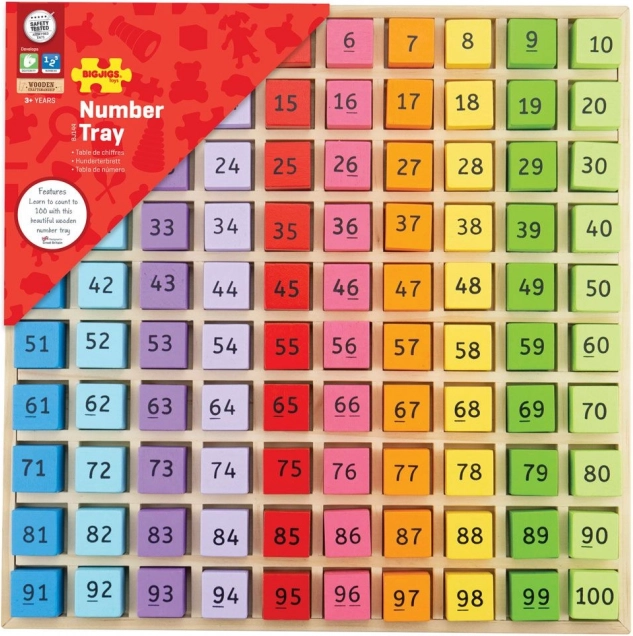 I giocattoli Bigjigs offrono divertimento e istruzione con i loro numeri in legno nel vassoio. Questo giocattolo è progettato per bambini dai 3 anni in su ed è ideale per lo sviluppo delle competenze di conteggio. Contiene 100 pezzi, numeri da 1 a 100, che sono colorati per facilitare il riconoscimento di numeri e colori.
