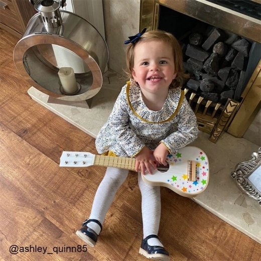 Il corpo in legno robusto e la vistosa stampa a stelline assicurano lunga durata ed entusiasmo per i piccoli musicisti.