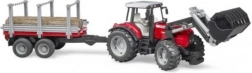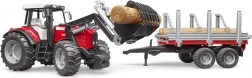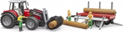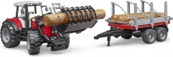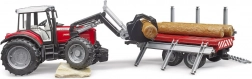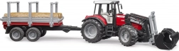 BRUDER trattore MASSEY FERGUSON 7480 con caricatore frontale e rimorchio per tronchi