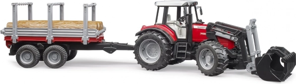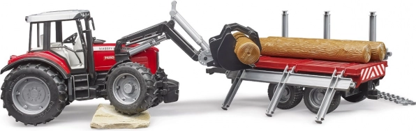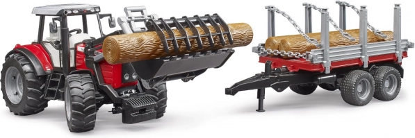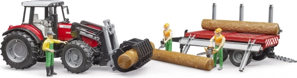 Il set BRUDER propone l’iconico trattore MASSEY FERGUSON 7480 con caricatore frontale e rimorchio per la legna per un gioco il più realistico possibile. Grazie ai dettagli funzionali, come il cofano motore apribile, l’asse anteriore sterzante e i pneumatici morbidi, i bambini gestiscono facilmente il carico e il trasporto dei tronchi.
