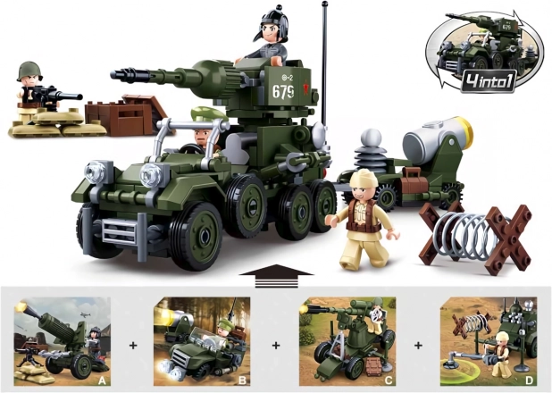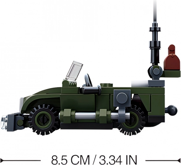 Questo set della serie tematica 'WWII' offre ai costruttori piccoli e grandi l'opportunità di creare e combinare. Il jeep Sluban è realizzato in plastica ABS resistente, assicurando una lunga durata e un gioco sicuro.