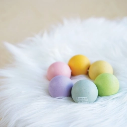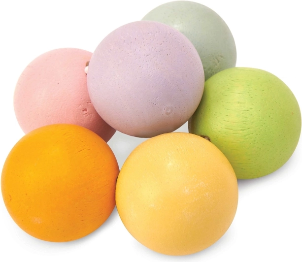 Le palline di legno pastello su elastico sono piacevoli da tenere in mano e aiutano ad alleviare le gengive sensibili durante la dentizione.