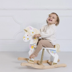 L’unicorno a dondolo LE TOY VAN della collezione Petilou è un classico giocattolo in chiave moderna. Grazie alla solida base in legno e all’ergonomia studiata, favorisce un dondolio naturale e sviluppa coordinazione, equilibrio e sicurezza nei movimenti. Ricchi dettagli colorati, corno dorato ed espressione adorabile stimolano fantasia e gioia del gioco.