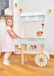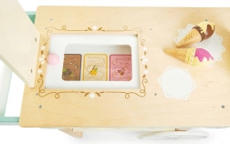 Il carretto offre porte scorrevoli verso il vano “ghiaccio” con illustrazioni dei gusti, due coni magnetici e ruote mobili, così i bambini possono giocare al gelataio ovunque. Supporta abilità sociali e verbali, sviluppa l’immaginazione e la motricità fine attraverso il gioco di ruolo. Il giocattolo ha ricevuto prestigiosi riconoscimenti per design, qualità e valore ludico.