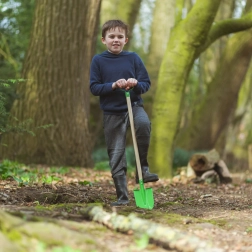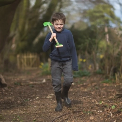 Il manico liscio e robusto in legno naturale si impugna comodamente e aiuta i bambini a scavare con sicurezza e minore affaticamento.