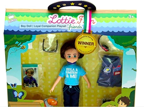 Lottie Finn è un bambolotto moderno che ispira i bambini alla gentilezza, al coraggio e all’esplorazione dello spazio. Grazie al vinile morbido privo di ftalati è piacevole al tatto e la sua struttura stabile consente di stare in piedi da solo e di assumere pose realistiche. La maglietta alla moda “TESLA & EINSTEIN & ME”, i jeans e le sneakers blu sono completati dal fedele compagno – il cagnolino Cookie.