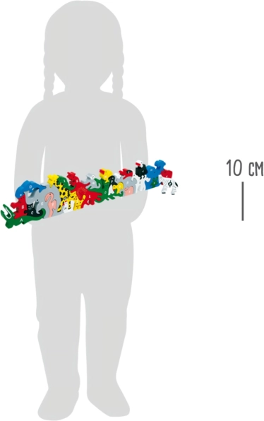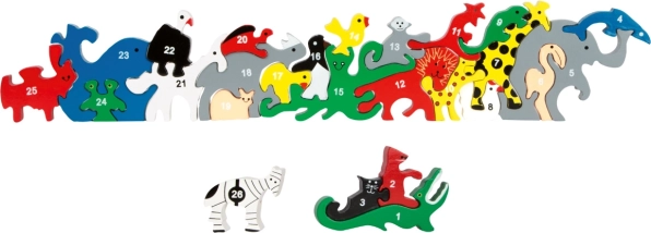 È composto da 26 pezzi, ognuno rappresenta un animale ed è contrassegnato da un numero su un lato e da una lettera dell'alfabeto sull'altro lato. Favorisce la motricità fine e sviluppa il pensiero creativo.