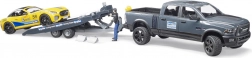 Questo set realistico di BRUDER combina un robusto pick-up fuoristrada RAM con un rimorchio da trasporto e un’auto sportiva gialla con tetto removibile. È incluso anche il personaggio del conducente, così puoi partire subito per le gare o trasportare l’auto in pista. La lavorazione precisa, le funzioni operative e la plastica resistente garantiscono lunga durata e un’ottima esperienza di gioco.