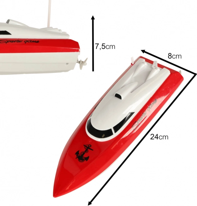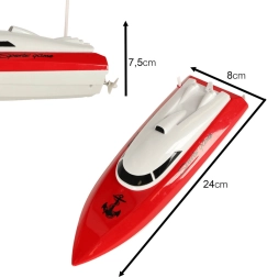 Con una lunghezza di 24 cm e uno scafo in plastica resistente, la barca è facile da trasportare, pronta a navigare rapidamente e ideale per piscina o stagno.