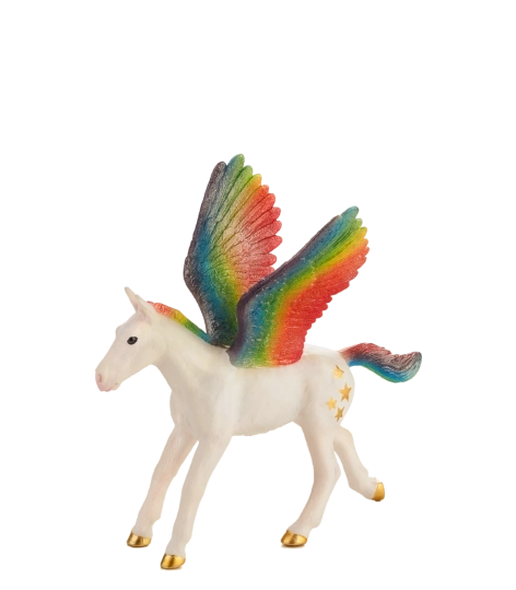 Dai vita alla fantasia con la figurina del Pegaso di MOJO. Grazie ai fini dettagli, alla suggestiva colorazione arcobaleno e alla struttura resistente, conquisterà bambini e collezionisti seri. Plastica sicura e priva di sostanze nocive, adatta dai 3 anni.