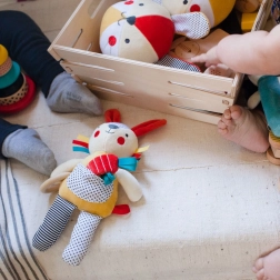 Presentiamo il sonaglio Coniglietto - l'ideale giocattolo organico per neonati dalla nascita. La produzione artigianale in cotone organico certificato garantisce un tocco delicato e sicurezza per il vostro bambino.