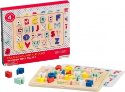 Questo set intelligente e giocoso unisce apprendimento e divertimento. Ogni lettera, una volta sollevata, rivela un'illustrazione a tema corrispondente alla lettera – in questo modo i bambini consolidano le lettere e, al contempo, scoprono vocaboli in inglese, francese, italiano e tedesco. I pezzi hanno bordi piacevolmente arrotondati per una presa sicura da parte delle piccole mani.