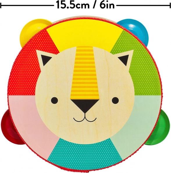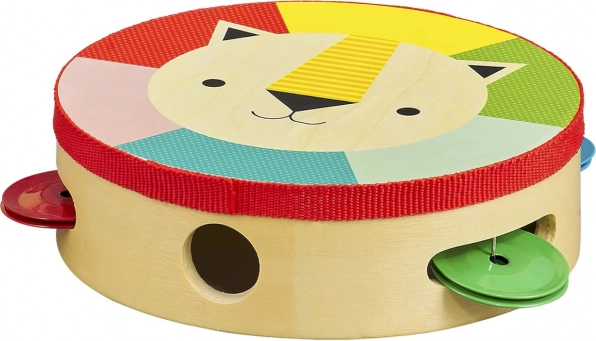 Questo tamburello in legno di alta qualità, in compensato di pioppo, farà felici i piccoli musicisti alle prime armi e i loro genitori. La presa leggera e confortevole, i colori vegetali sicuri e la vernice a base d'acqua garantiscono un gioco spensierato. Il motivo del leone e i colori vivaci stimolano la percezione del ritmo, delle tonalità e le abilità motorie.