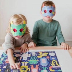 Scoprite l’allegro mondo del festival dei mostriciattoli: prima i bambini si immergono nell’assemblaggio del puzzle variopinto, poi indossano speciali maschere 3D per rivelare oggetti nascosti. Il gioco unisce in modo intelligente divertimento e apprendimento, sviluppando concentrazione, pazienza e percezione visiva.