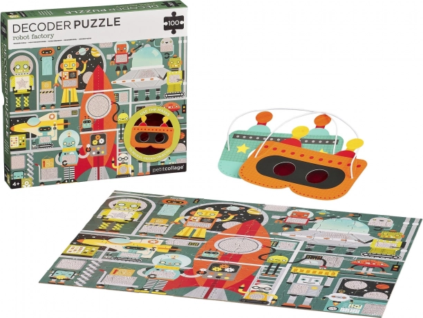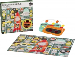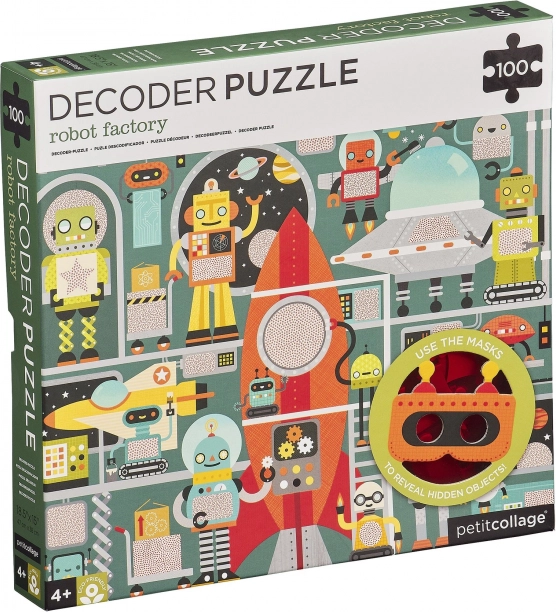 Entra nel mondo dei robot e della loro fabbrica! Assembla il puzzle da 100 pezzi e, grazie alla speciale maschera decodificatrice, scopri i dettagli nascosti necessari per completare l'astronave. Questo accessorio ingegnoso trasforma il puzzle in un'attività interattiva che sviluppa logica, osservazione e motricità fine.