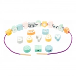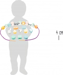 Le estremità in legno del laccio facilitano l’infilatura e rafforzano la coordinazione mano–occhio e l’agilità delle dita.