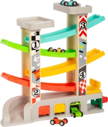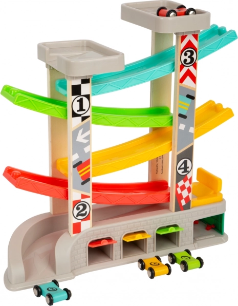 La pista è progettata per sviluppare abilità di gioco imitativo e motricità fine, mentre i bambini corrono con quattro macchinine dai colori diversi. Inoltre, grazie al pratico sistema di parcheggio e stoccaggio, i piccoli piloti possono facilmente riporre le loro macchinine dopo la corsa.