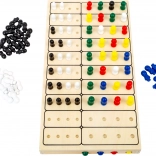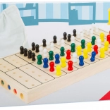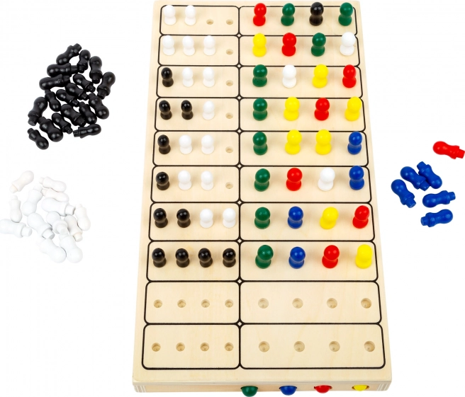 - Tavola e pedine: Il gioco è composto da una tavoletta di legno con fori e pedine colorate che offrono diverse combinazioni di colori.