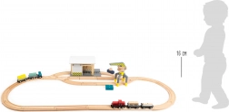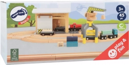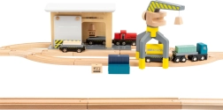 Scopri il set completo in legno per una piccola ferrovia, pienamente compatibile con le comuni piste ferroviarie in legno. I bambini potranno divertirsi con il carico realistico tramite la gru, il trasporto delle merci e il gioco nel deposito. Il set include fino a 44 pezzi, tra cui 25 binari, una gru girevole a 360°, vagoni e carichi magnetici e una parete scorrevole con carrucola. Realizzato in 100% legno FSC per un gioco sicuro e sostenibile.