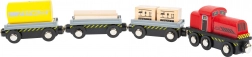 Inclusi 25 elementi di binario, locomotiva con vagoni e carico. Il set si collega facilmente alla maggior parte delle ferrovie in legno per un mondo di gioco ancora più ampio.