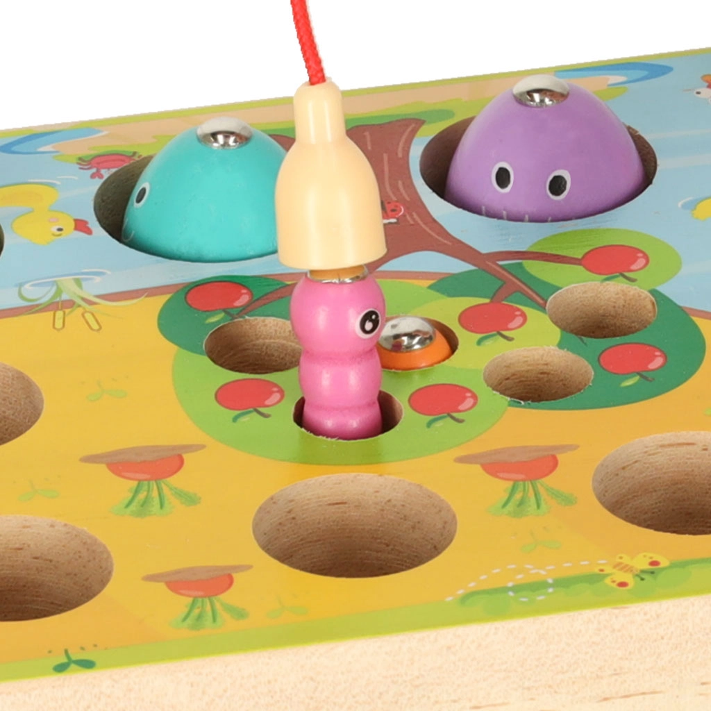La canna magnetica con cordicella richiede movimenti precisi, rafforzando la coordinazione occhio–mano e allenando la pazienza durante la pesca dei pesciolini e dei vermetti.
