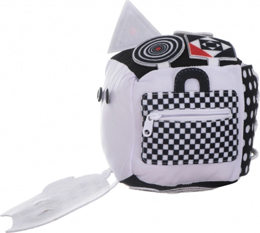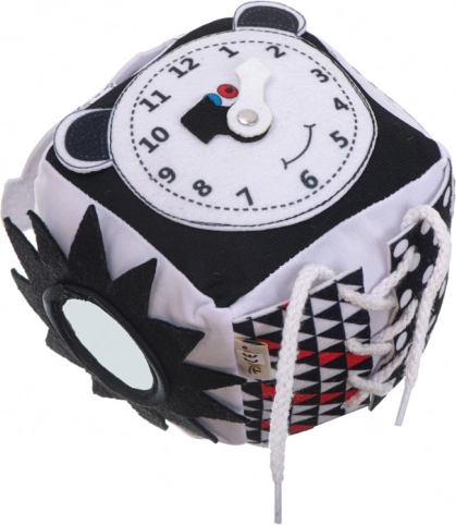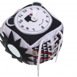 Questo soffice cubo sensoriale renderà ogni giorno del tuo piccolo esploratore straordinario. Motivi a contrasto e colori bianchi e neri stimolano la vista, mentre varie texture aiutano lo sviluppo del tatto. Il cubo è dotato di sonagli e elementi scricchiolanti, che attirano l'udito anche dei più piccoli.