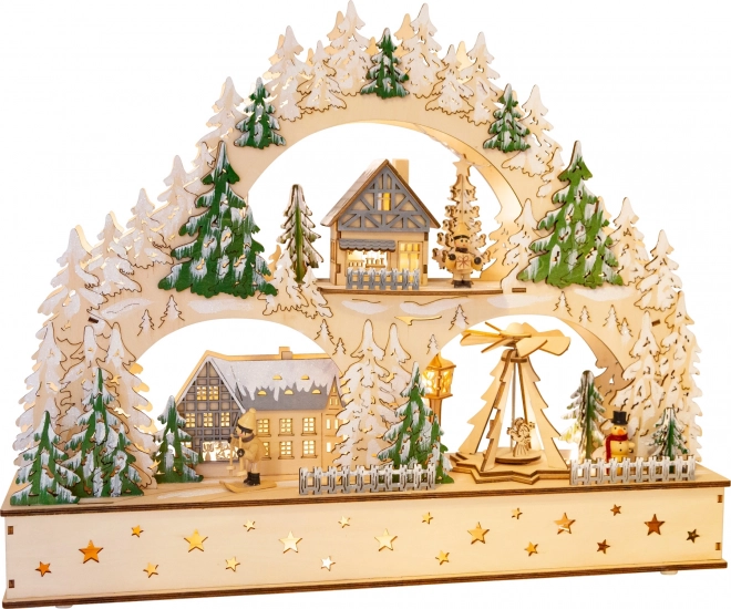 Scopri la magia del Natale con l'arco in legno SMALL FOOT, che raffigura un pittoresco villaggio invernale con casette, alberi e personaggi. I dettagli finemente intagliati e l'aspetto naturale del legno con accenti bianchi e verdi risultano eleganti e senza tempo in ogni interno.