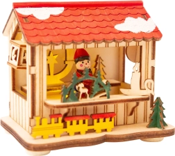 Questo elegante set di tre bancarelle in legno del marchio Small Foot porta nel tuo ambiente il calore dei mercatini di Natale. Ogni pezzo si distingue per l’accurata intagliatura, i dettagli dipinti e la delicata luce indiretta, perfetta per mensole, davanzali e anche per la cameretta dei bambini.