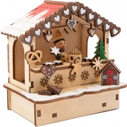 I motivi a tema della bancarella delle spezie e di quella del pan di zenzero sono completati da un effetto “neve” scintillante che esalta l’addobbo festivo. Grazie alle dimensioni compatte, la decorazione si combina facilmente con altre figurine e scenari invernali.