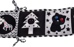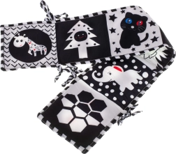 Questo libretto sensomotorio a contrasto, progettato come paracolpi per culla, è la scelta perfetta per i bambini che iniziano a scoprire il mondo. Il libro a forma di fisarmonica può essere facilmente fissato alla culla grazie ai lacci, offrendo non solo divertimento ma anche sicurezza.