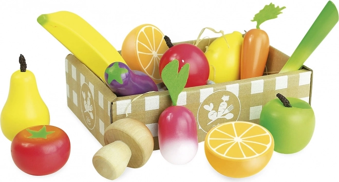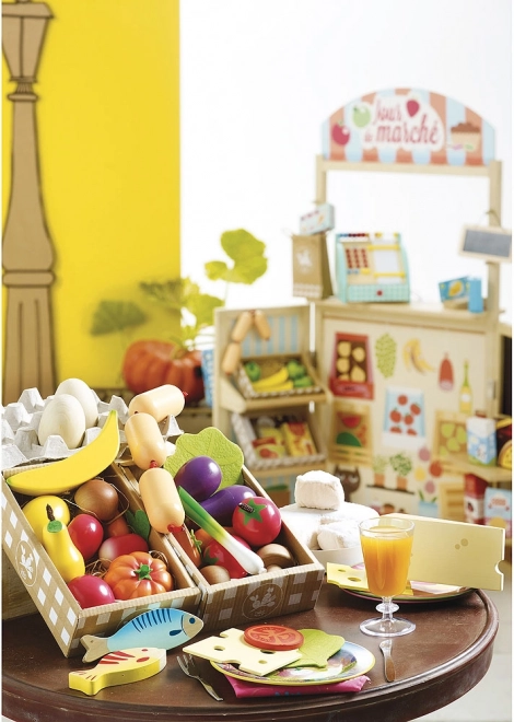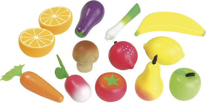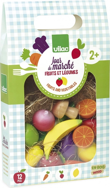 Questo set di qualità di VILAC offre ai bambini una selezione variopinta di frutta e verdura preferite. La realizzazione in legno con accessori in feltro è resistente, sicura e piacevole al tatto. Il set è perfetto per i giochi nella cucina dei bambini e al mercato, favorisce la comunicazione, la creatività e l’apprendimento di una sana alimentazione.
