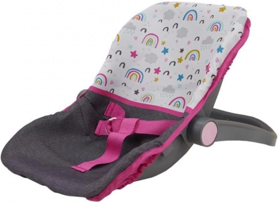 Pratico seggiolino auto per bambola con motivo arcobaleno, facilmente trasformabile in seggiolone per l’alimentazione. Ideale per bambole fino a circa 41 cm e per bambini dai 3 anni. Funzione 2-in-1, facile da usare e gioco di cura coinvolgente che sviluppa fantasia e motricità fine.