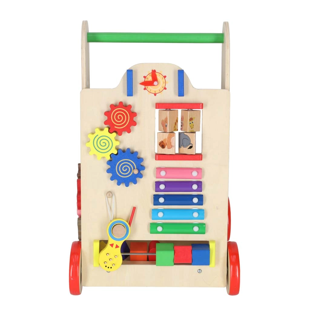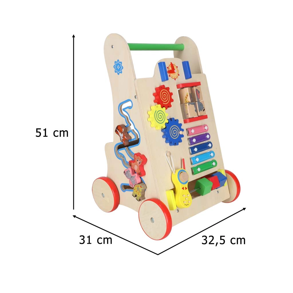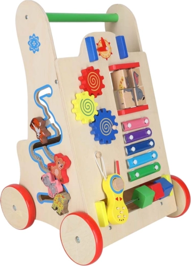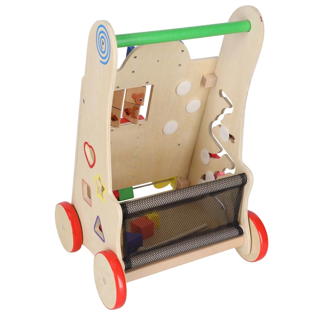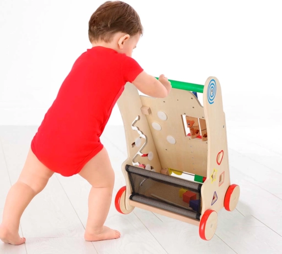 La solida struttura in legno e le ruote con gomma antiscivolo aiutano i bambini ad allenare la camminata con maggiore sicurezza ed equilibrio.