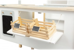 Include una bilancia, scaffali ribaltabili, lavagne, macchina da caffè e spazi di stoccaggio con cassette che supportano la creatività dei bambini e li ispirano a giochi infiniti.