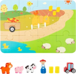 Il maialino fa oink, il trattore brontola. Un gioco portatile in una bellissima valigetta: i bambini possono creare la propria fattoria grazie alle figure di gioco in legno a forma di trattore, animali domestici e contadino. Per prima cosa componete la base con il puzzle e poi potete iniziare a giocare! Le balle di fieno in miniatura completano la fattoria alla perfezione. Immergetevi nella vita di campagna e lasciate libera la fantasia. La valigetta è in metallo robusto, il manico è in legno e la chiusura si apre facilmente. Ideale per camerette, sale giochi... Caratteristiche principali: contiene 12 pezzi di puzzle e figure di contadino, trattore, maialino, mucca, cavallino e balle di fieno; confezione pratica – valigetta in metallo con manico in legno