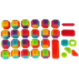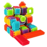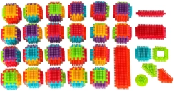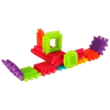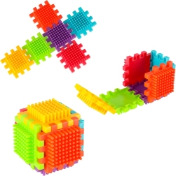 I blocchi sono realizzati in plastica di alta qualità, sono molto leggeri, flessibili e allo stesso tempo super resistenti. Aiutano nell’apprendimento di nuove forme e colori e sviluppano le abilità manuali. I blocchi sono progettati per stimolare i sensi in via di sviluppo del bambino: la vista tramite colori vivaci e il tatto grazie alla forma originale e al particolare modo di collegamento. Blocchi che offrono straordinarie opportunità di gioco creativo! Oltre alle tradizionali possibilità di combinazione come con i comuni mattoncini, questi blocchi possono essere collegati anche sull’intera superficie laterale, offrendo un’ulteriore modalità di costruzione. Possono essere utilizzati per costruire edifici, robot e altre strutture!