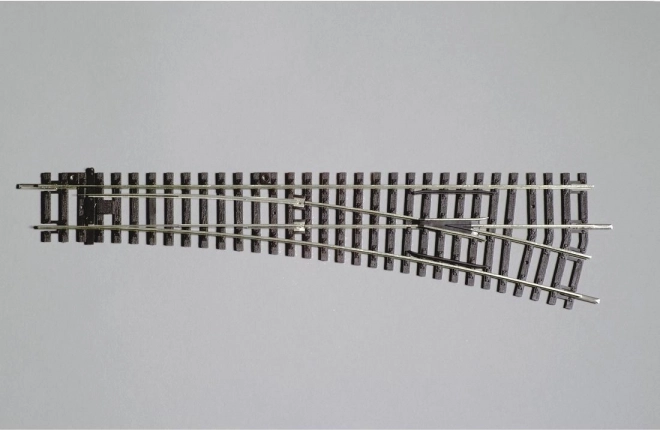 Deviazionamento con riproduzione dettagliata delle traversine in legno nei colori autentici. Combina un binario dritto e una curva di 15° verso destra e può essere controllato manualmente. Esiste la possibilità di collegare un motorino telecomandato.