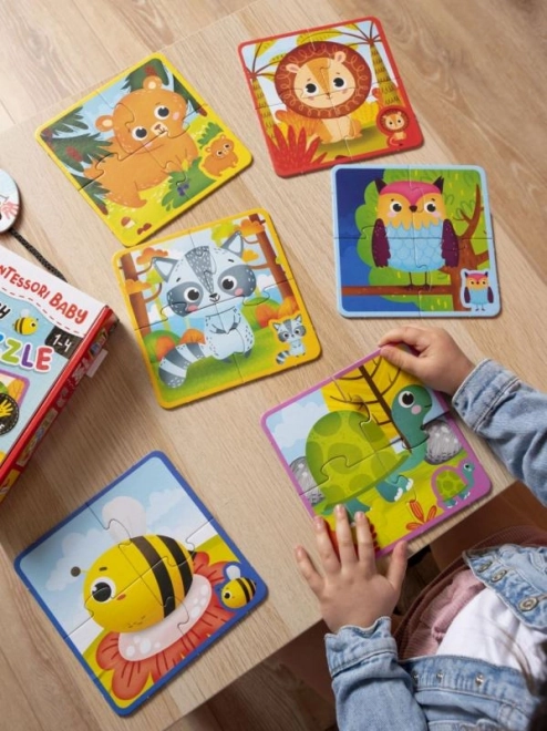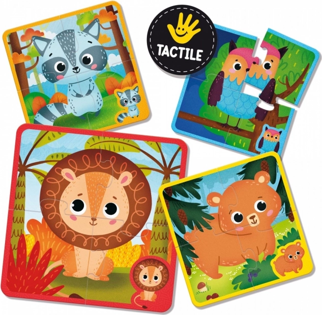 Il set Puzzle Tattile Montessori contiene 24 pezzi, con i quali è possibile comporre 6 diverse immagini di animali. Ogni animale ha una superficie speciale ruvida che aiuta i bambini a sviluppare la percezione tattile e le capacità di osservazione. Questi puzzle sono progettati per coinvolgere tutti i sensi dei bambini e supportare il loro sviluppo naturale.