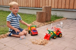 Sollevate, caricate e spostate i materiali proprio come in cantiere. La benna a comando meccanico è facile da usare e diverte i bambini per ore.