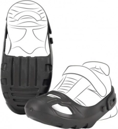 Pratici copriscarpe protettivi neri di BIG mantengono le scarpe dei bambini al sicuro durante la guida di balance bike e bobby car. Grazie al materiale morbido e resistente, i copriscarpe si adattano facilmente a diversi tipi di calzature, non scivolano e non lasciano segni. La taglia regolabile garantisce un fissaggio sicuro e comfort per i piccoli piloti anche in frenata o su superfici irregolari.