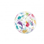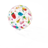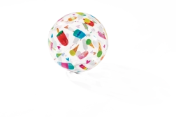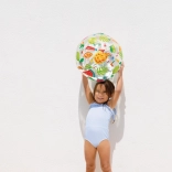 Il pallone trasparente è decorato con stampe colorate di frutta, gelati, pesciolini e temi marini. Il motivo è selezionato casualmente, ma garantisce sempre un aspetto allegro e un’ottima visibilità in acqua e in spiaggia.