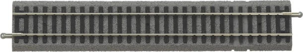 Piko binario dritto con riproduzione realistica di traverse in legno e ballast in ghiaia, compatibile con sistemi analogici e digitali.