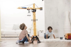 Costruisci il tuo cantiere a casa! Questa gru a torre alta 120 cm offre un angolo di rotazione di 350°, telecomando cablato e un argano a fune funzionante per sollevare e abbassare i carichi. Inclusi accessori e cabina aperta per una mini-figura di circa 7,6 cm (non inclusa). Ideale per il gioco creativo e lo sviluppo della motricità fine dei bambini dai 3 anni.