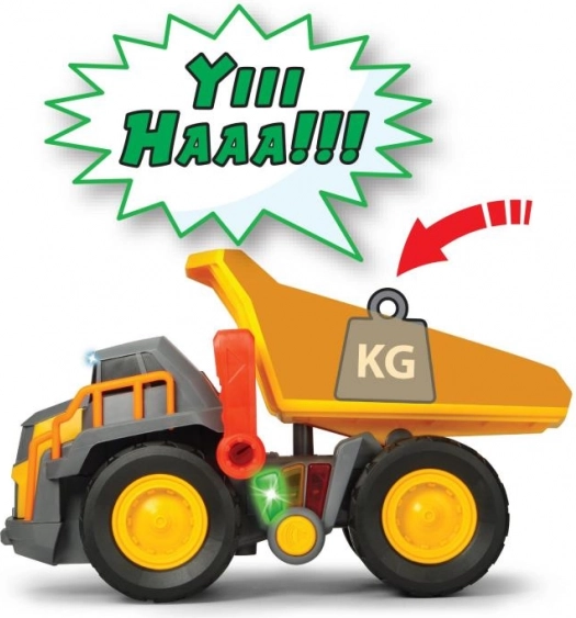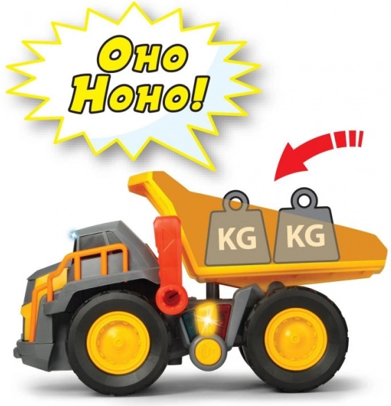Questo camion ribaltabile Volvo per bambini offre divertimento illimitato per giochi di finzione. Caratterizzato da movimento senza motore e risponde a tre diversi livelli di carico con luci colorate e segnali acustici.