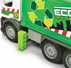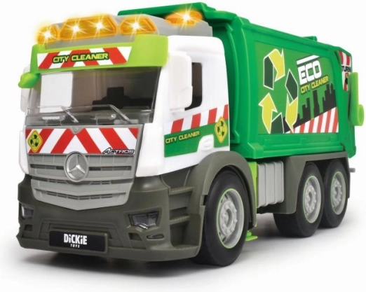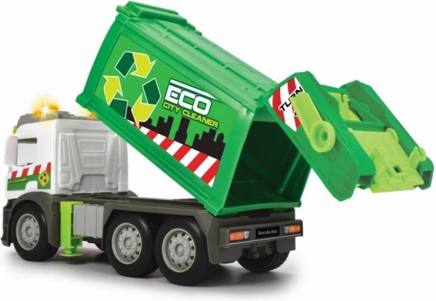 Scoprite la pulizia urbana con lo stiloso camion dei rifiuti Mercedes. I bambini ameranno la realistica realizzazione con luci e suoni funzionali, che intensificano l’esperienza di gioco. Il cassone ribaltabile e il contenitore incluso permettono di caricare e scaricare “rifiuti” come nella realtà.