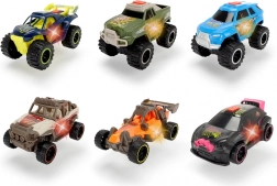 Auto fuoristrada a ruota libera con effetti luminosi e sonori. Lunghezza 11,5 cm. 6 tipi.