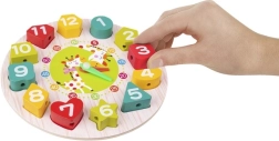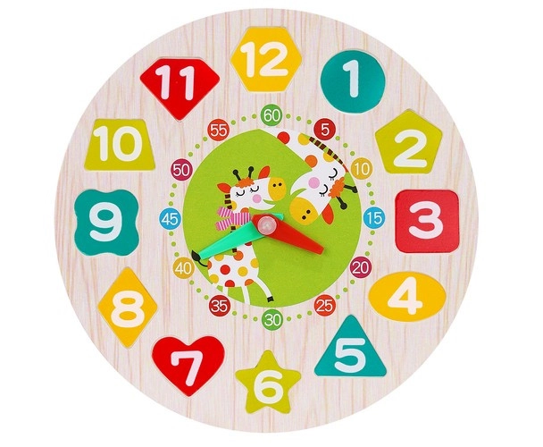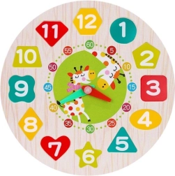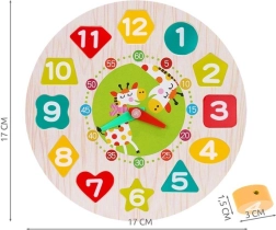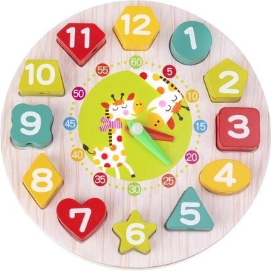 Questo gioco educativo in legno unisce gioco e apprendimento. La base rotonda con i numeri 1–12 in varie forme insegna ad abbinare le forme, riconoscere colori e cifre, mentre le lancette delle ore e dei minuti aiutano a comprendere ore piene e minuti. I componenti in legno, resistenti e piacevoli al tatto, sono rifiniti in modo sicuro.