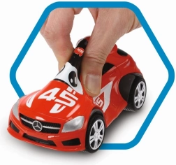 Scegli tra le varianti rossa, blu o verde. Il design con licenza MERCEDES con occhi e numeri conquisterà ogni bambino.