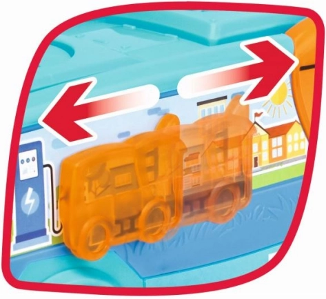 Le porte apribili e l’elemento laterale mobile invitano alla scoperta e al gioco realistico del trasporto urbano. La robusta struttura in plastica è resistente e sicura per il gioco quotidiano in casa e in viaggio.