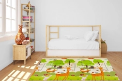 Il tappetino in schiuma può essere utilizzato anche come tappetino per allergici, per i quali i normali tappeti tessuti sono inappropriati. Il tappetino può essere facilmente arrotolato e riposto, in modo da non occupare molto spazio. Grazie ai motivi universali questo tappetino può essere utilizzato sia nella stanza delle bambine che in quella dei bambini.